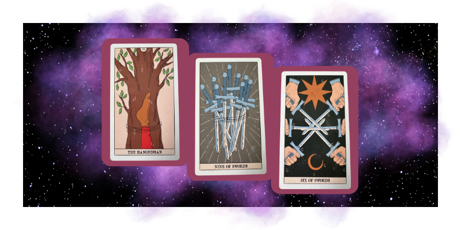 With the Hanged Man to start, this is indicative of the "stuck" feeling the Feminine is experiencing. It can quite literally translate into the feminine feeling like they are just kinda left suspended in this situation they are in wondering WTF is going to happen next. The key here with the Hanged Man is that it is symbolic of something much greater than hanging around (pun intended) waiting to see what happens next. It is showing the Divine Feminine that they are being met with an invitation to surrender, to release expectations and fear.